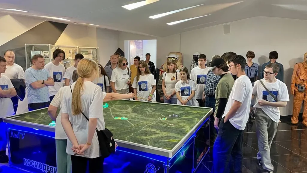 В ожидании запуска наши дети в сопровождении Веры Гвоздевой изучили местные музеи, познакомились с Самбуровым Сергеем Николаевичем- правнуком Циолковского, который в данный момент работает в РКК «Энергия». А также успели пройтись по знаменитой набережной и посмотреть на китайский город Хэйхэ.
